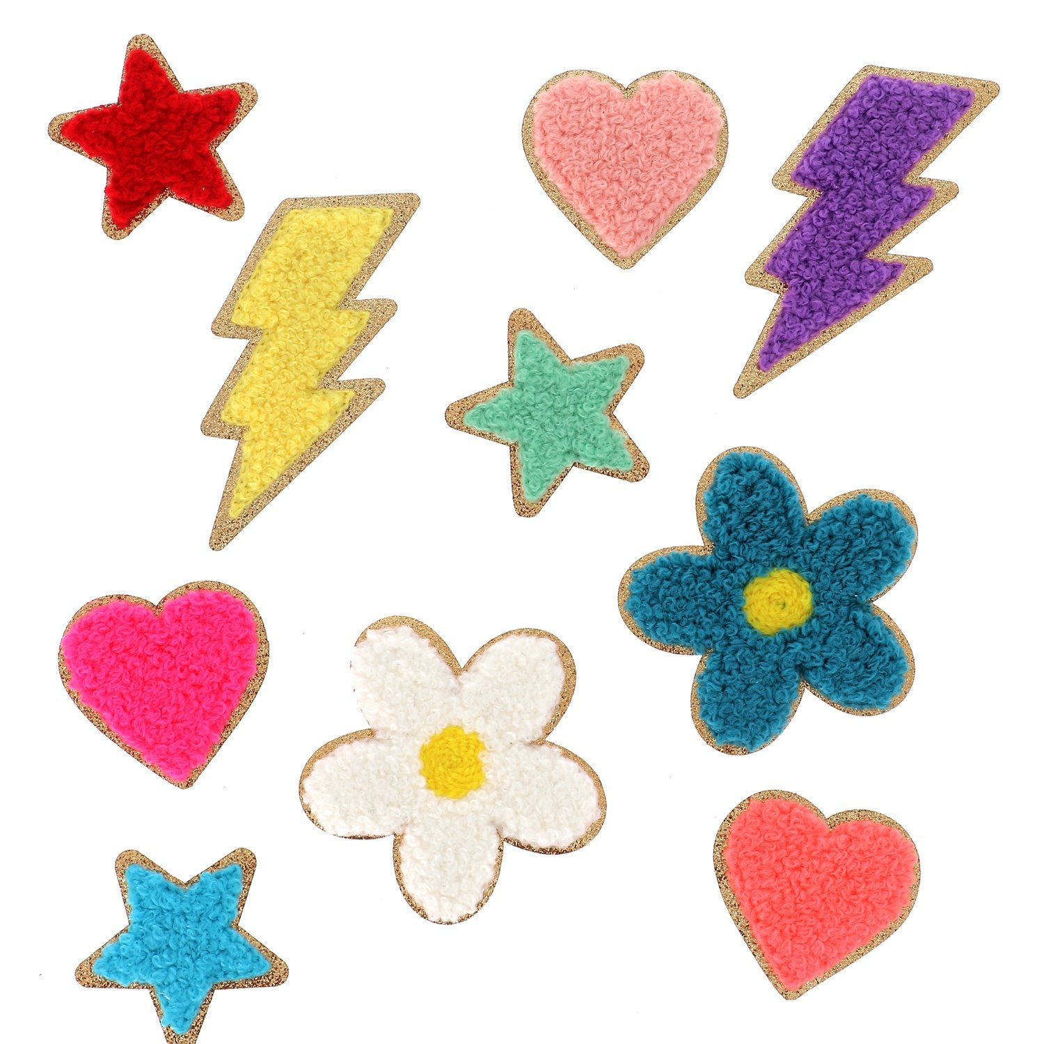 Fluffy iron-on patches - Soft effect & gold edging