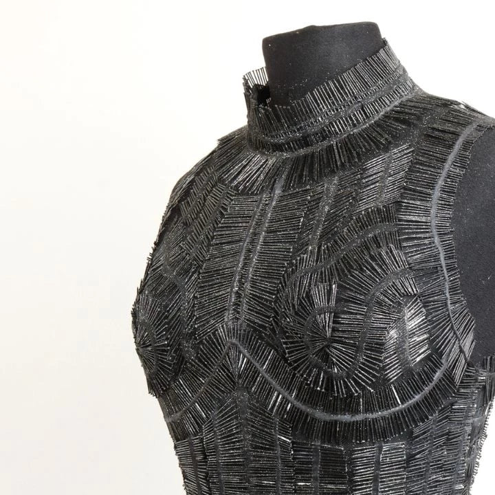 Today, three pin dresses are part of our heritage: two that we regularly exhibit at events, and one that you can admire during your visit to the BOHIN workshops.