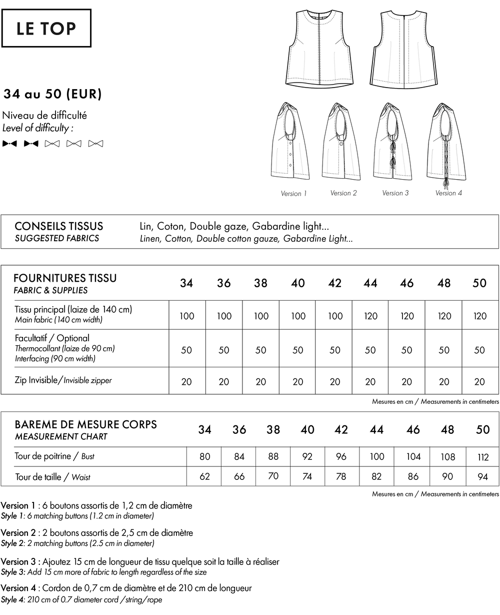Patron pochette LE Top - du 34 au 50